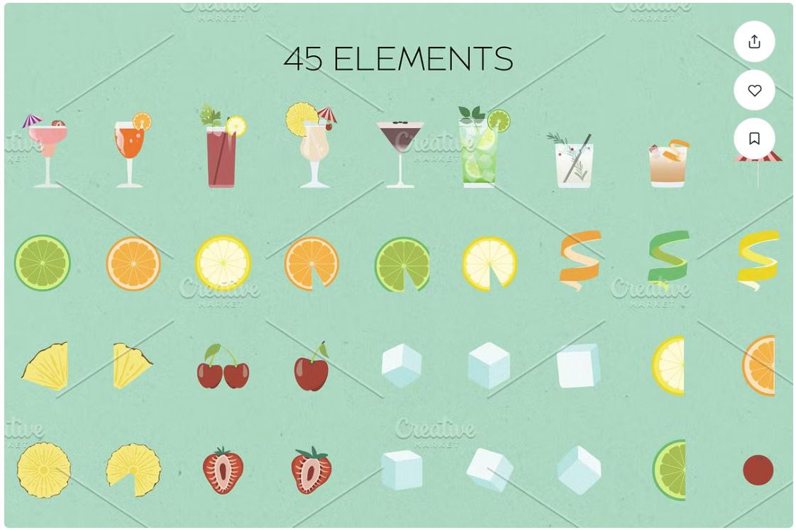 Cocktail Bar - Drinks & Garnish Illustration Set